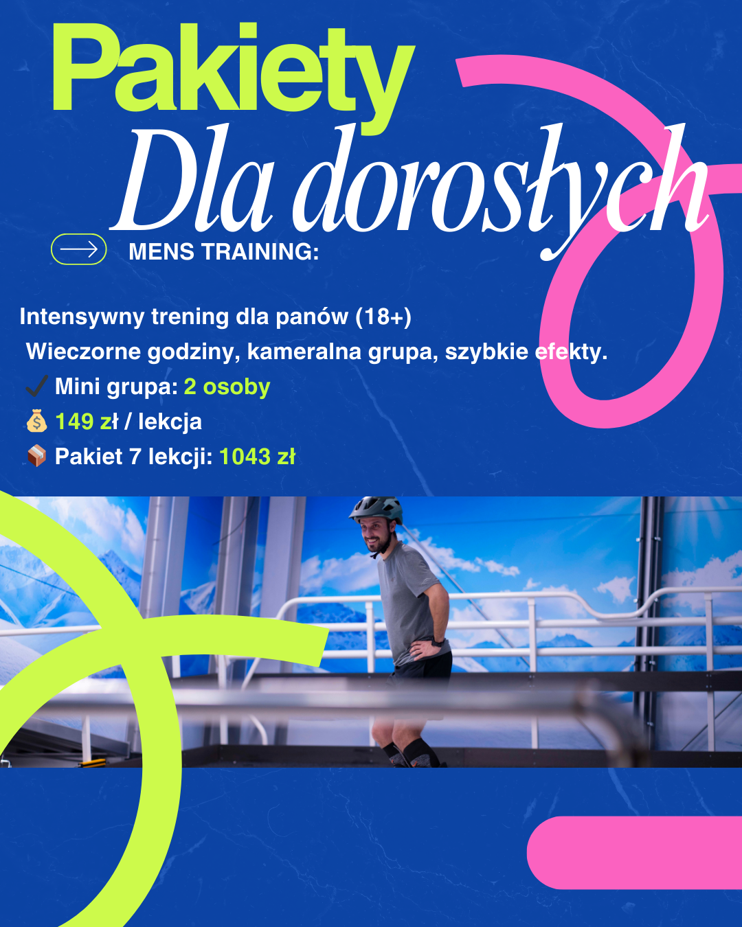- Przynieś swoje buty i kask lub wypożycz sprzęt w cenie lekcji.